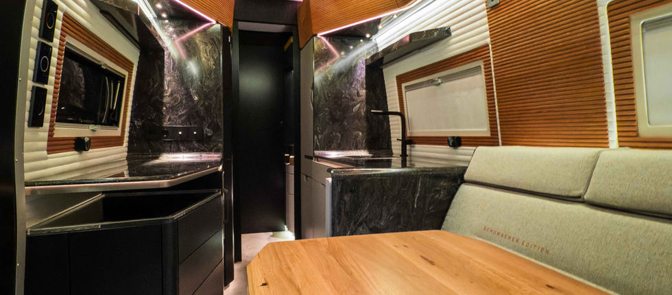 The Schumacher Edition is more than a nod to a name — it’s a vehicle built with the same mindset that drives champions: every detail matters. From the sleek lines of the cabinetry to the feel of the leather upholstery, the experience inside is one of elegance and efficiency.
